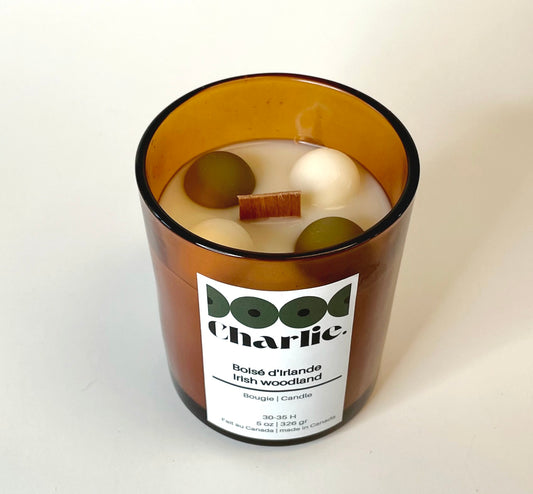 Bougie boisé d'Irlande 5 onces faite de cire de soja biologique