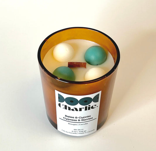 Bougie baies et cyprès 5 onces faite de cire de soja biologique